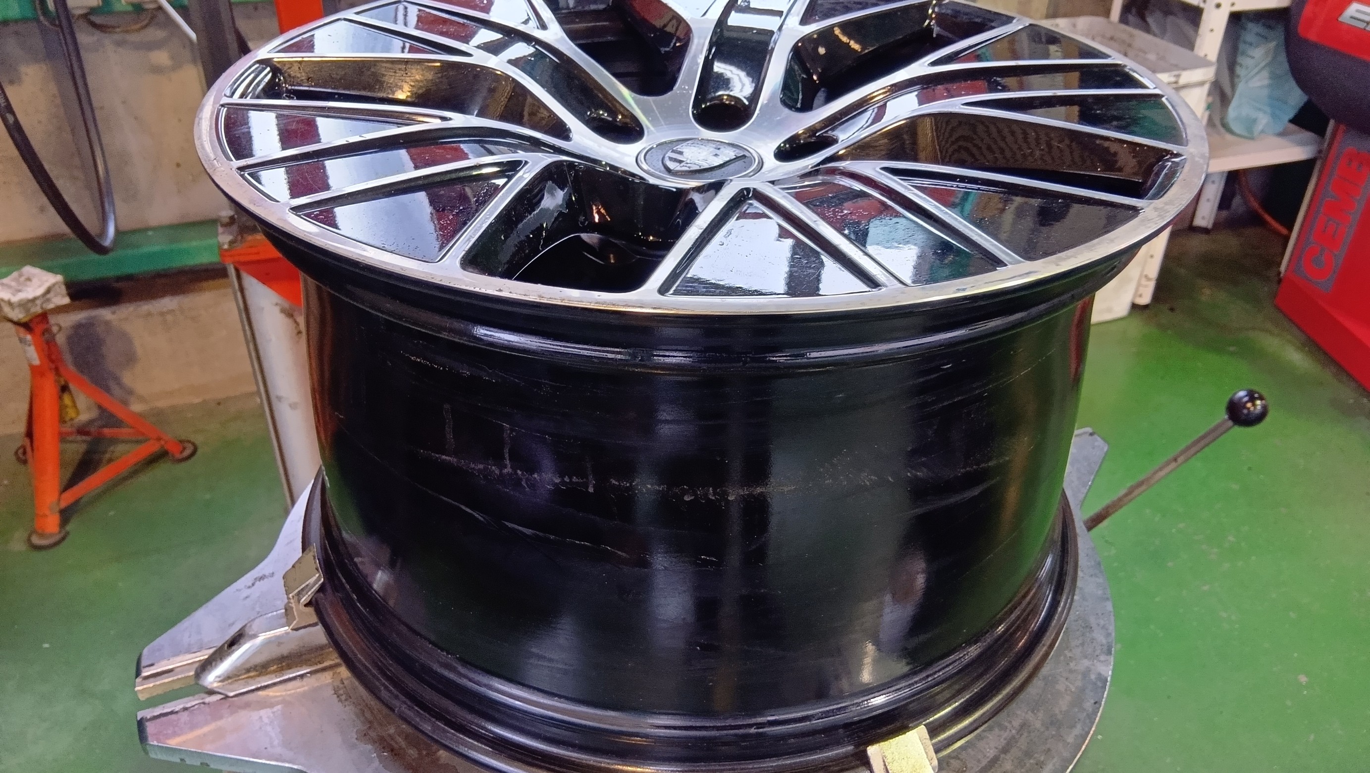 外してタイヤを剥がすと、ホイールが太い11JX20インチです