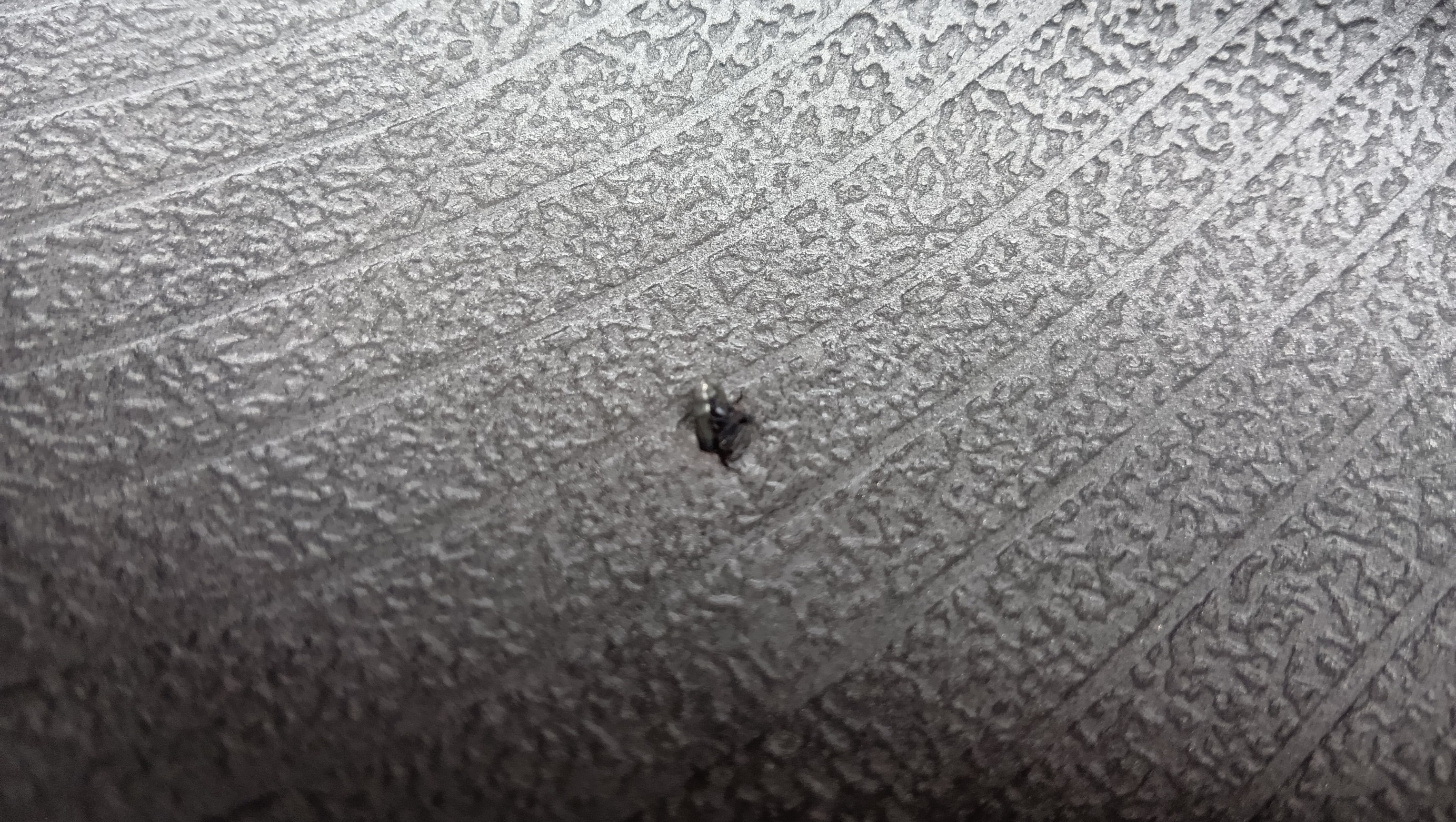 確かにクギかビスらしき物が刺さってますね、修理液を付けてみるとジワジワと漏れてます
