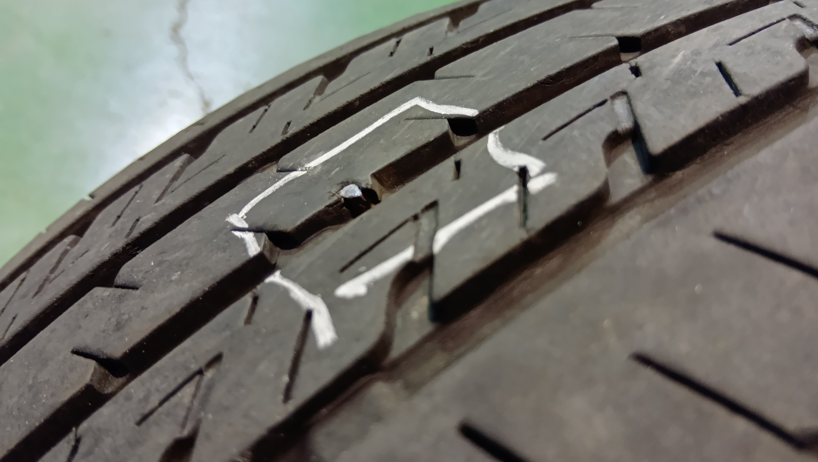 1本タイヤの空気が抜けてしまうので見てほしいとの事でご来店です