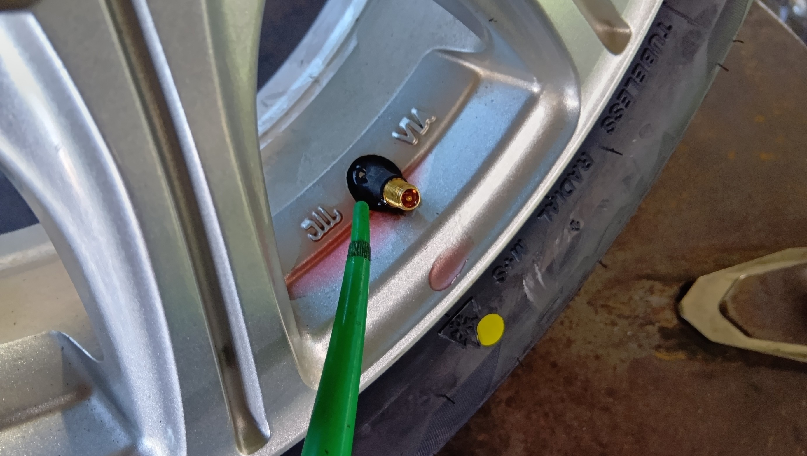 エアー圧を調整したら、交換したエアーバルブに漏れが無いか確認