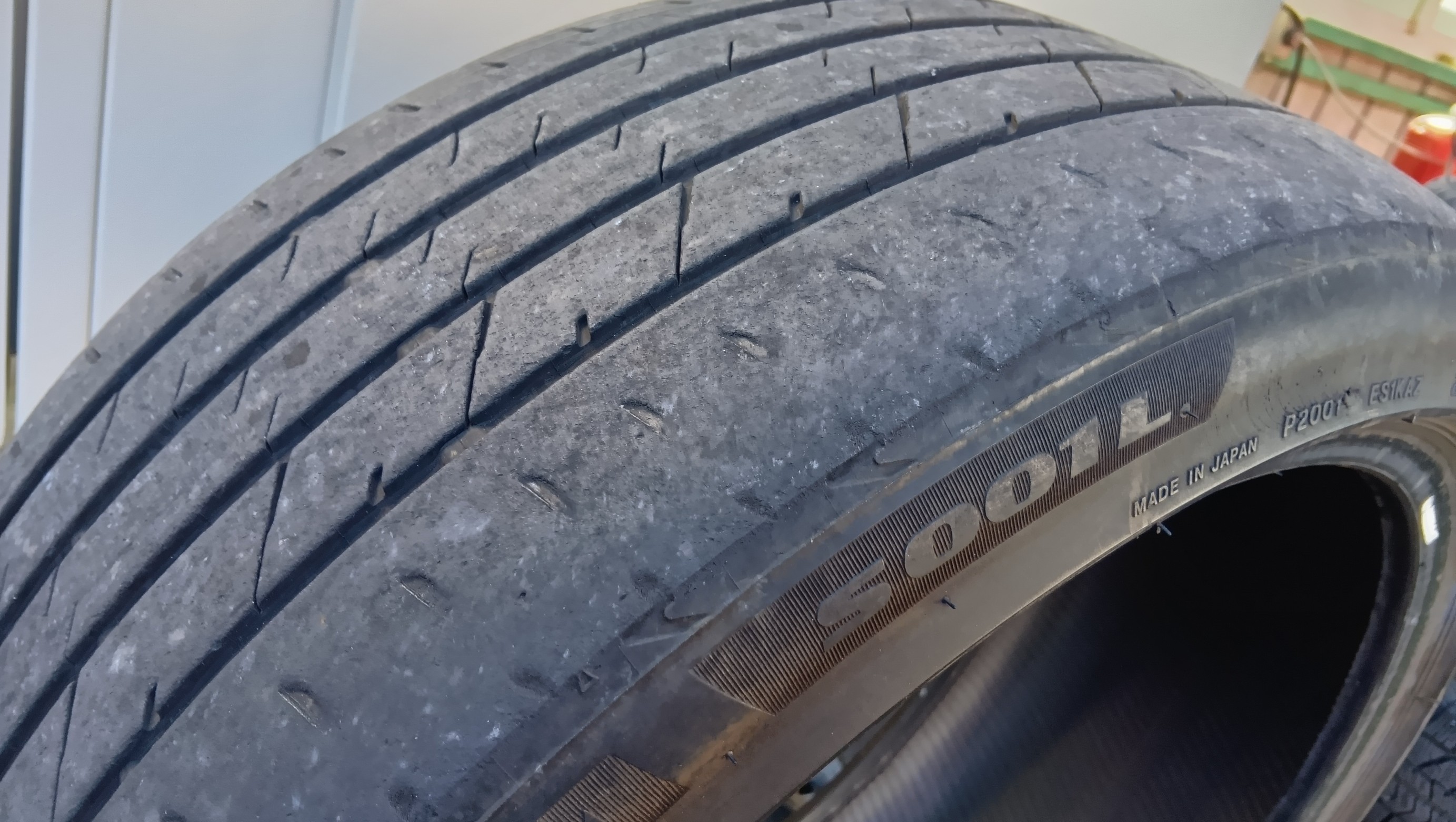 こちらが履いてたタイヤです、トレッドセンターは少しミゾが残ってますが