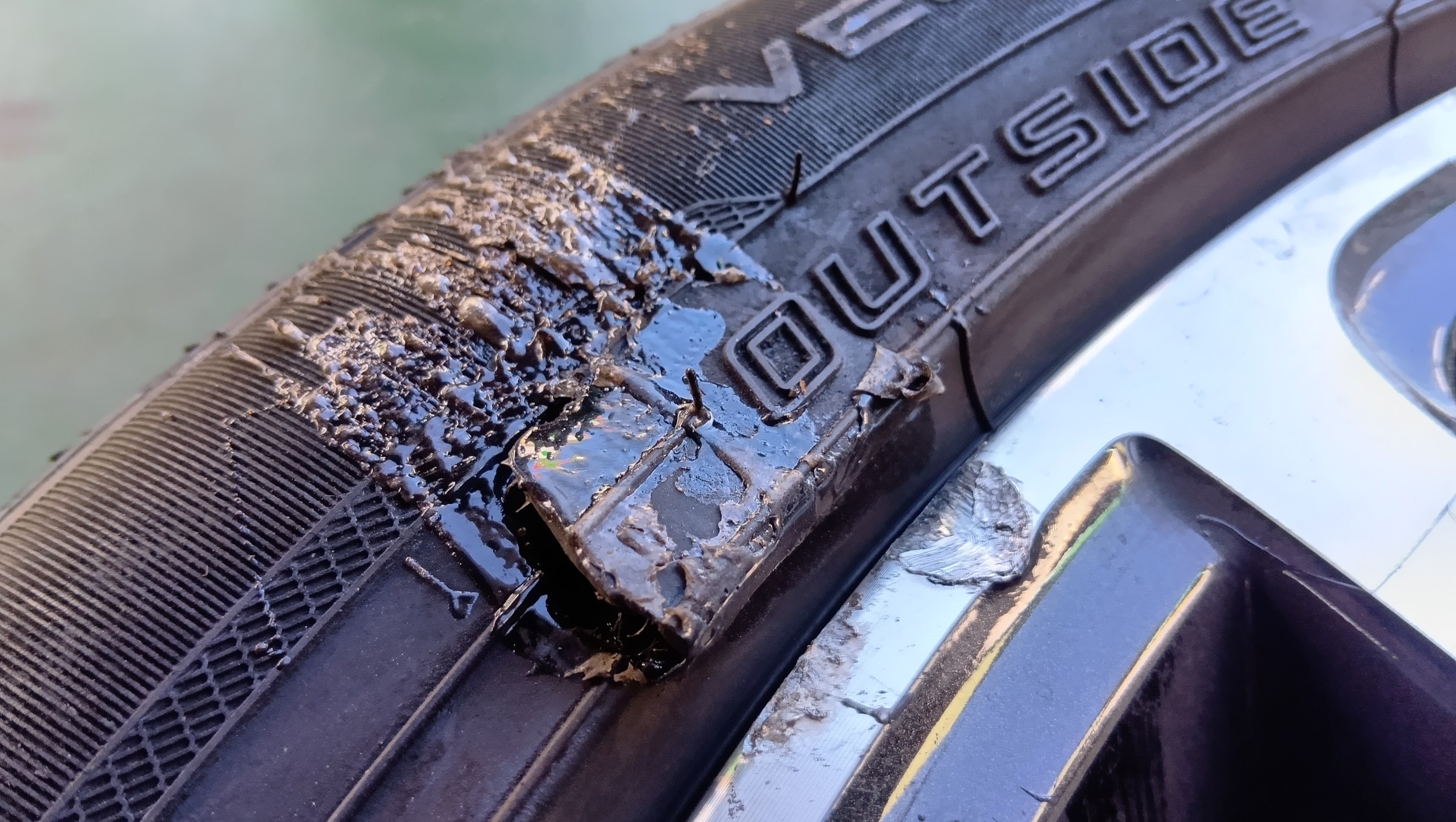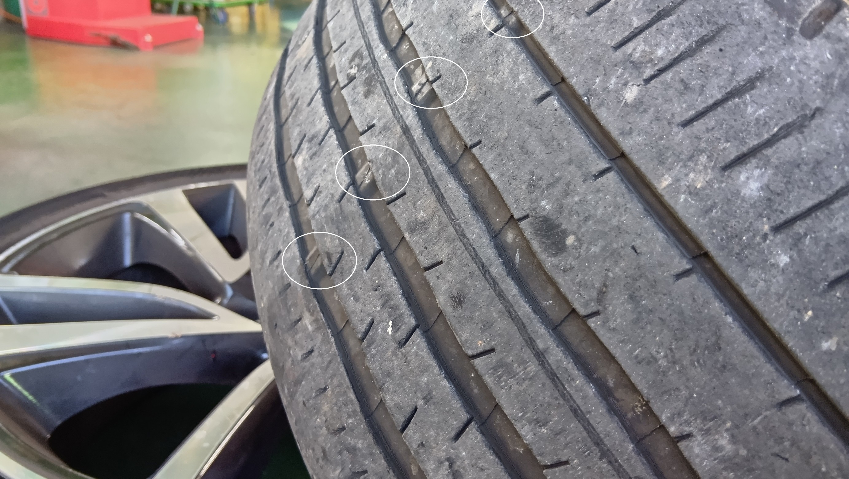 そして、その内の1本はサイドを縁石に引っかけたらしく