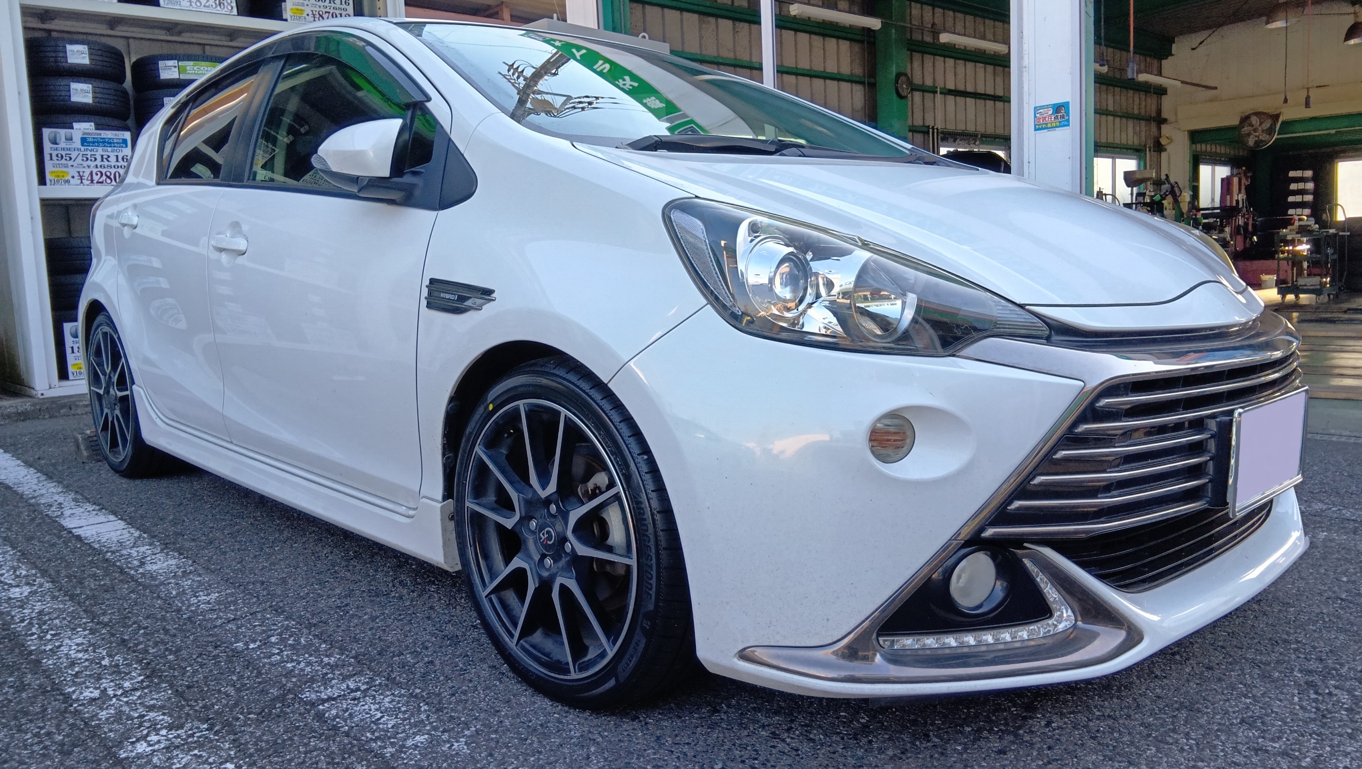 こちらのアクアはG'sグレードになります、標準で17インチのタイヤが装着されています