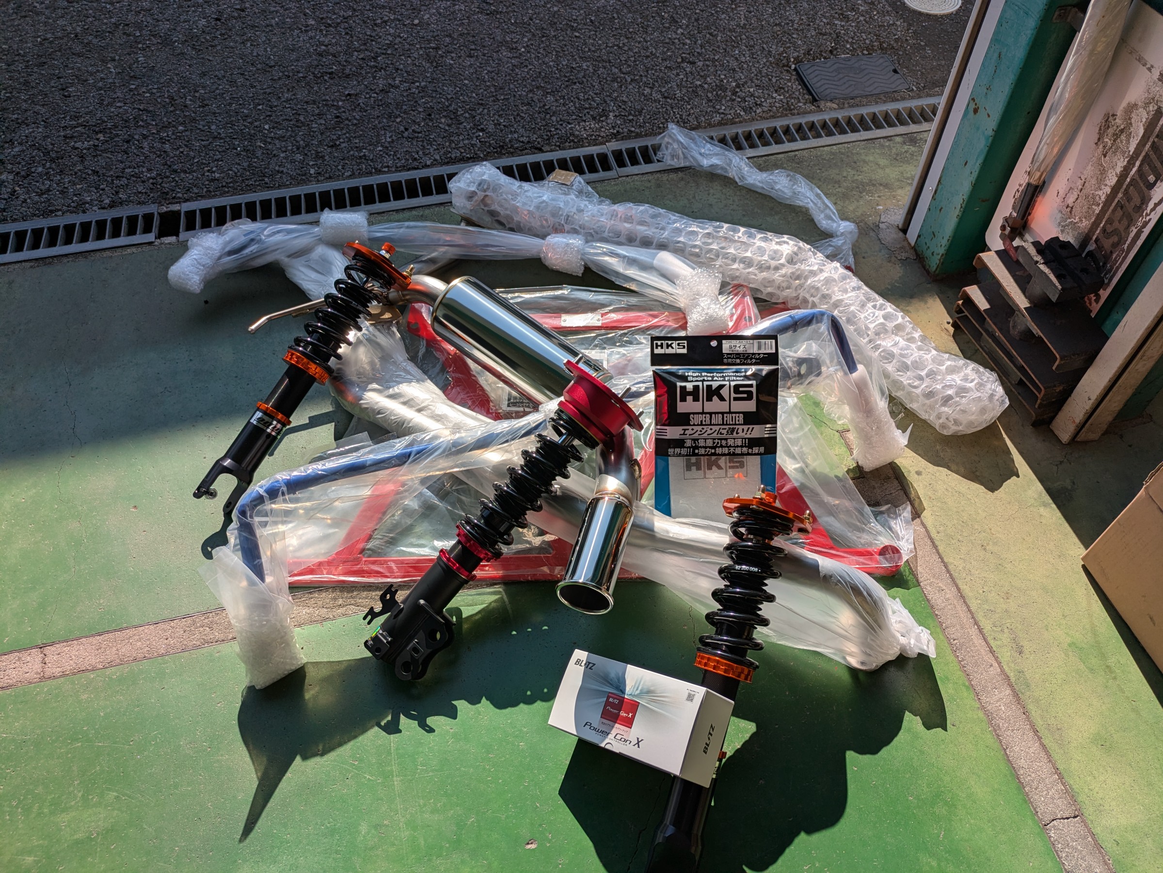 本日は、車高調・マフラー・スタビライザー・ボディ補強バーなどなど