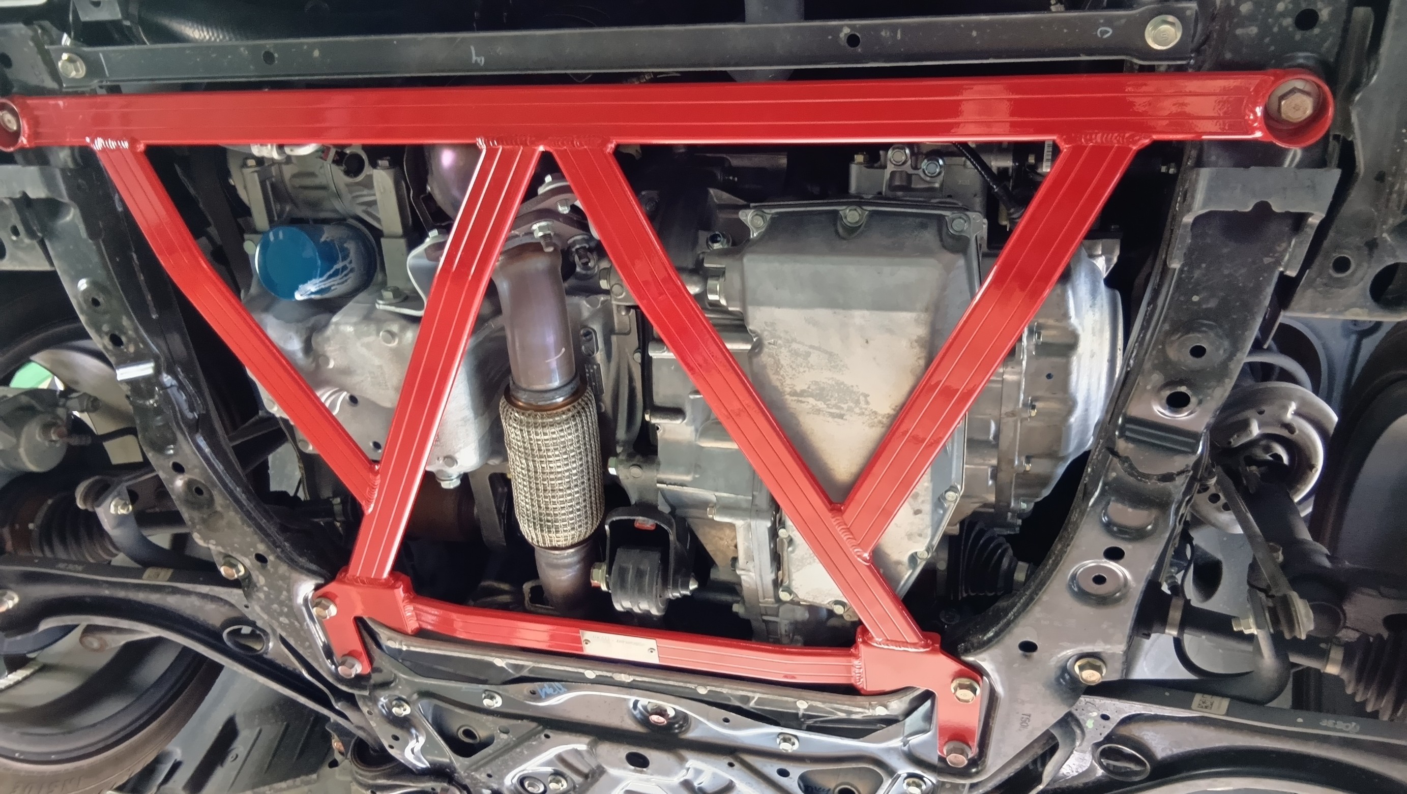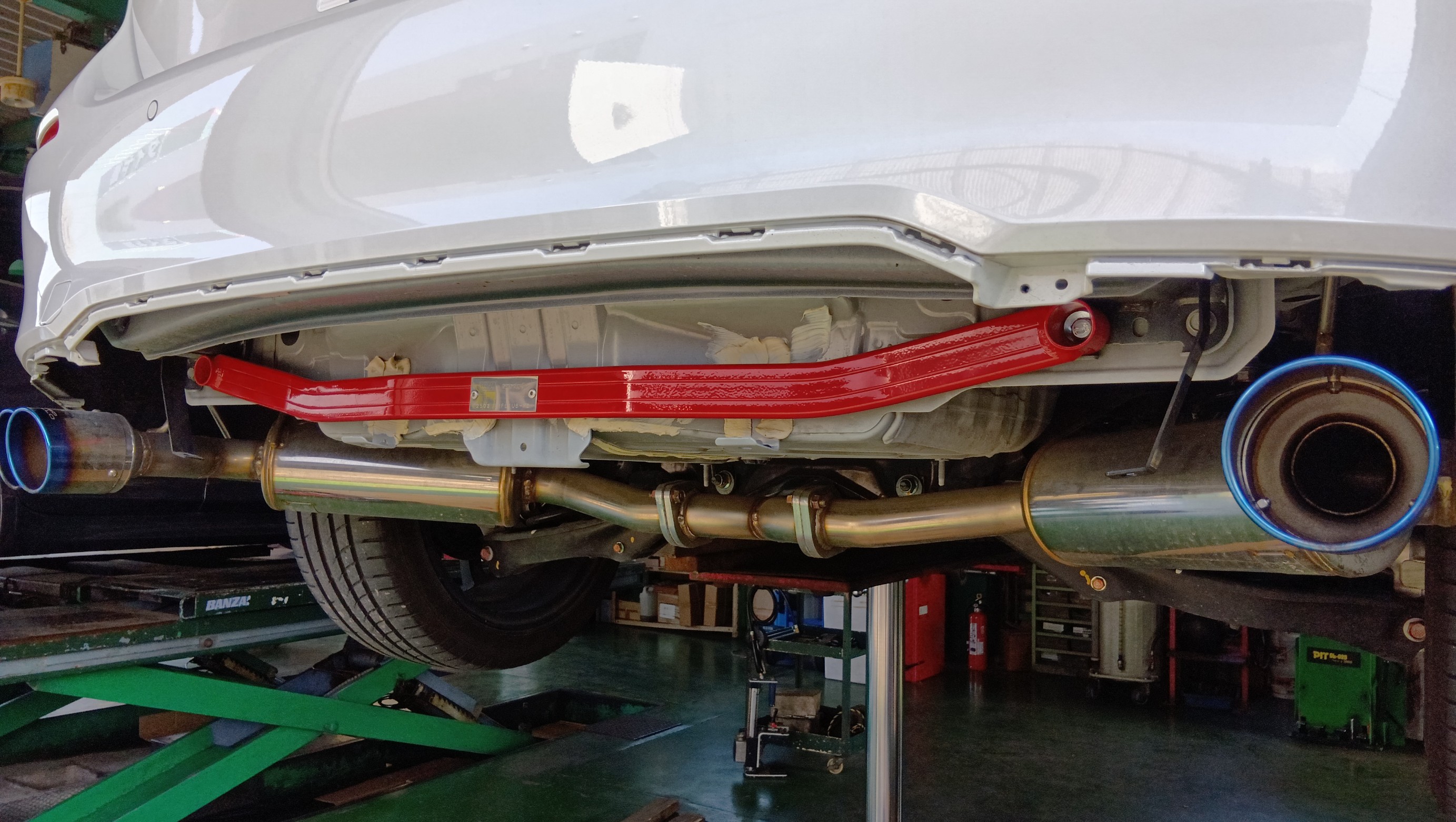 タナベのフロアーブレスとリアのパフォーマンスバーの取り付けです
