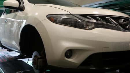 今日は、ニッサンのムラーノにスタッドレスの取付です。