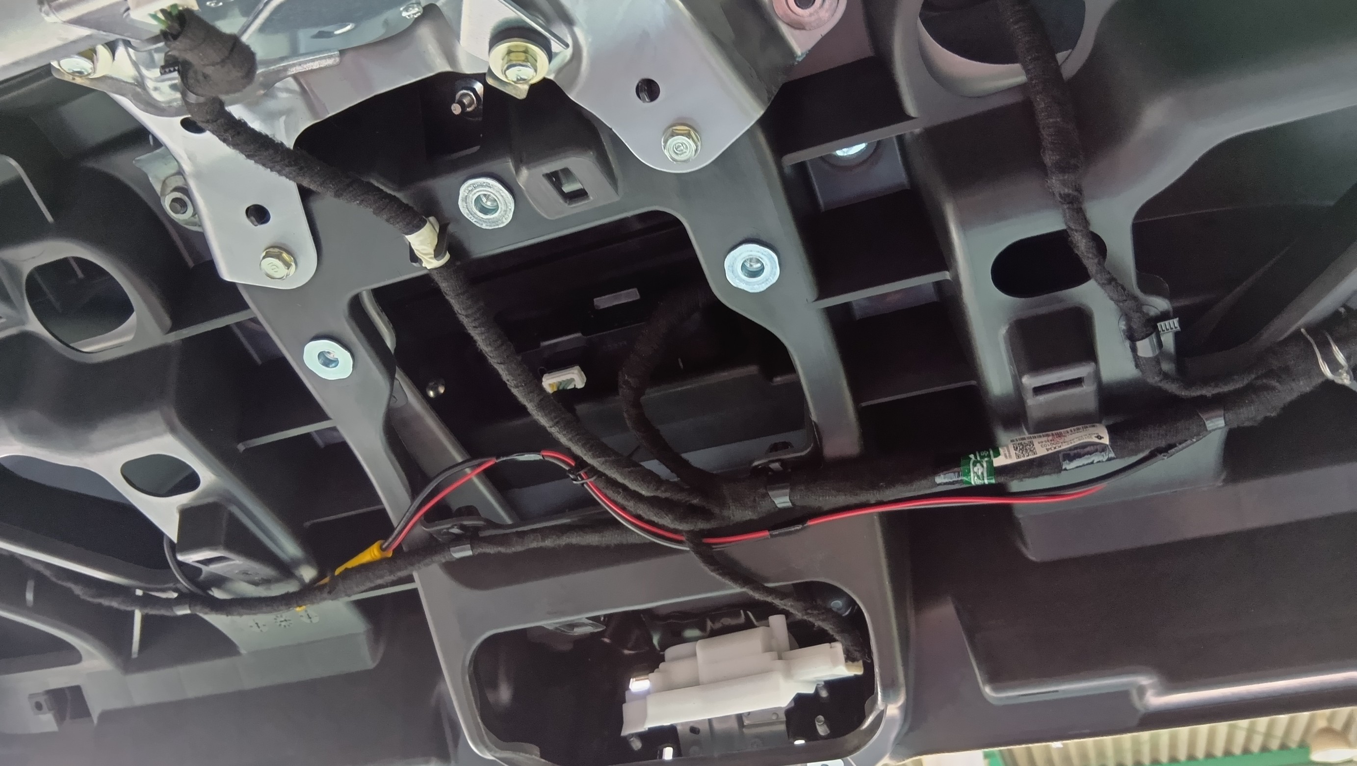 最後にフロント周りから取った電源と、トランクから引っ張ってきたカメラの配線を