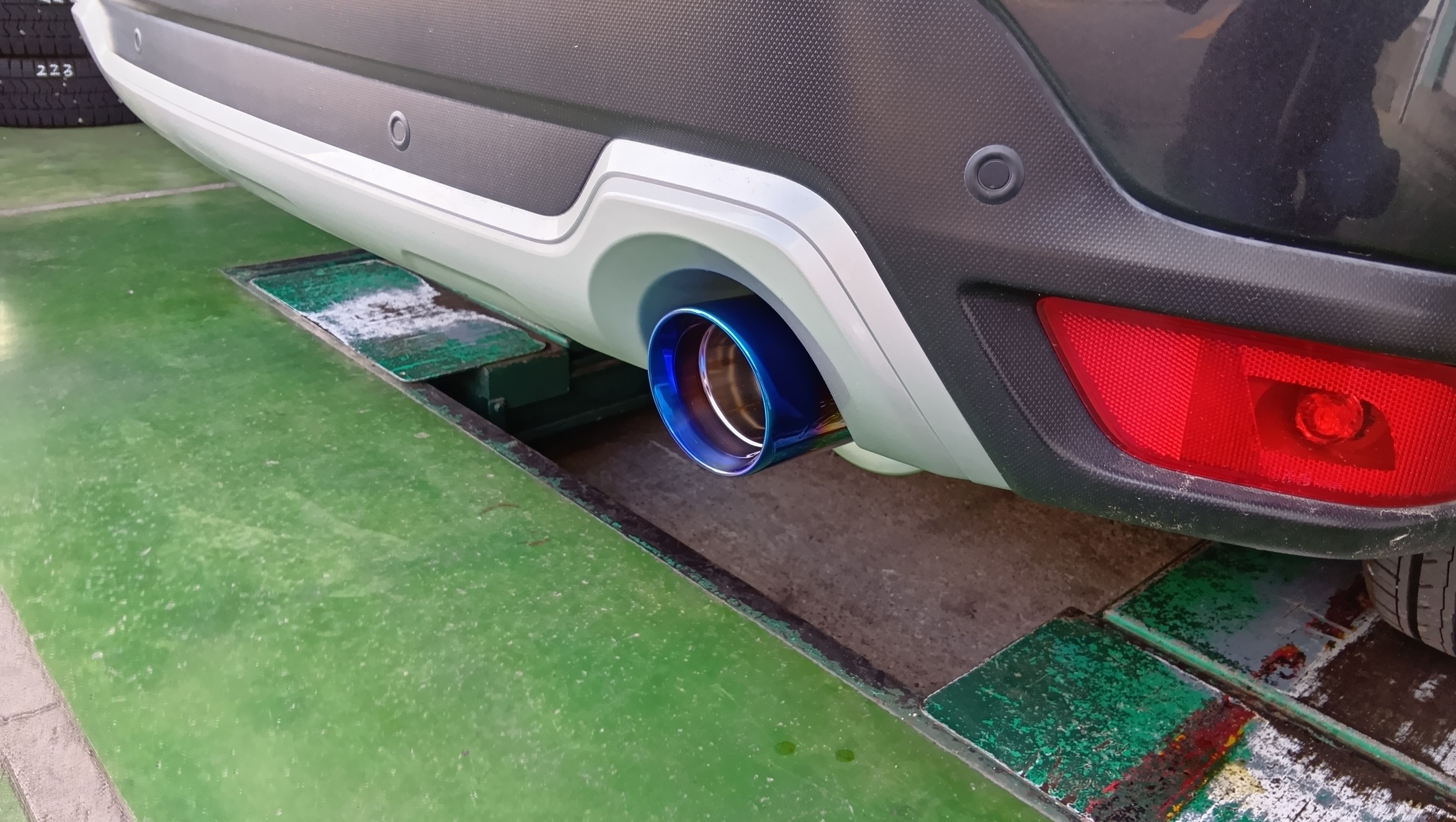 そして、交換後の出口です、チタンブルーがいい味だしてますね