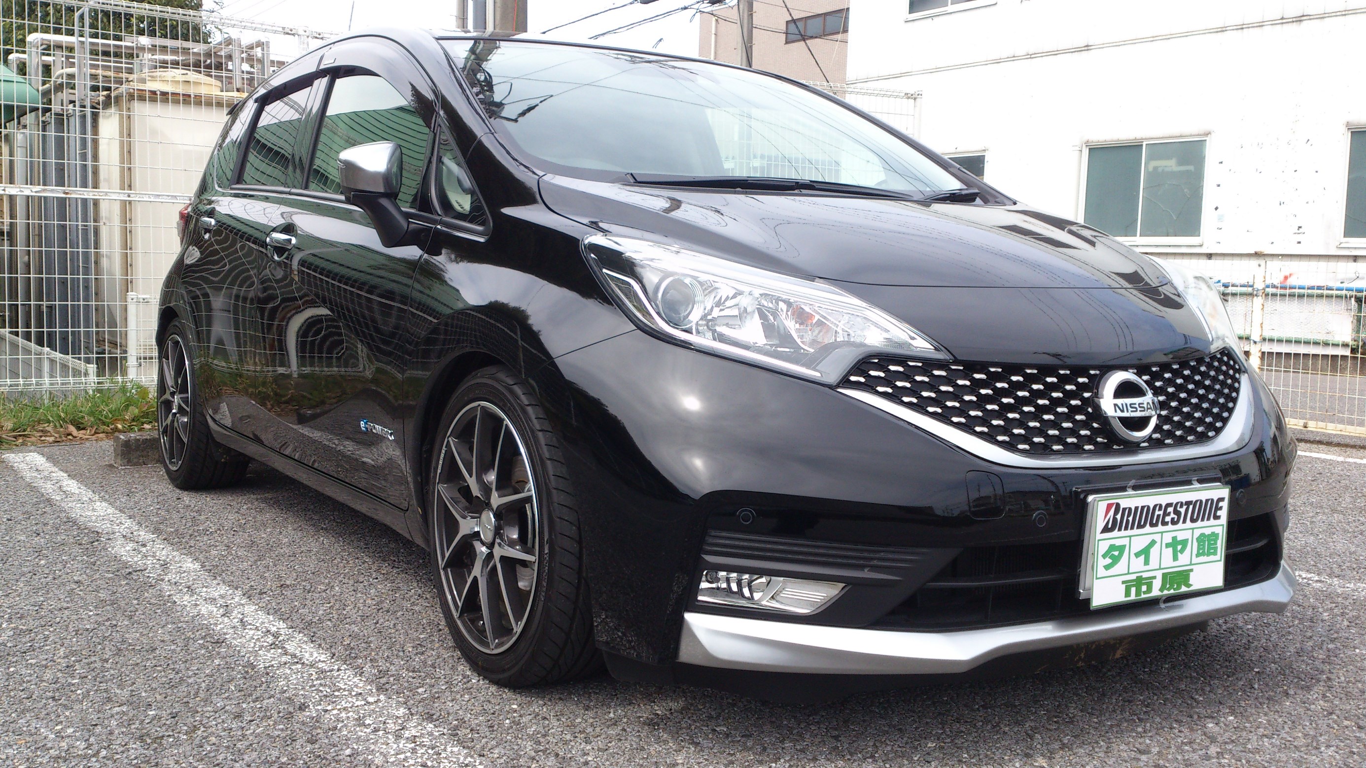 今日は話題のニッサンNOTEのe‐POWERに車高調の取付です