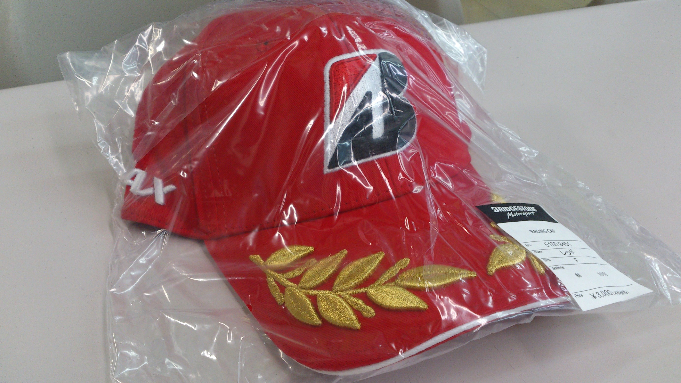タイヤ館ではBRIDGESTONEグッズの販売もやってます、今回の帽子など