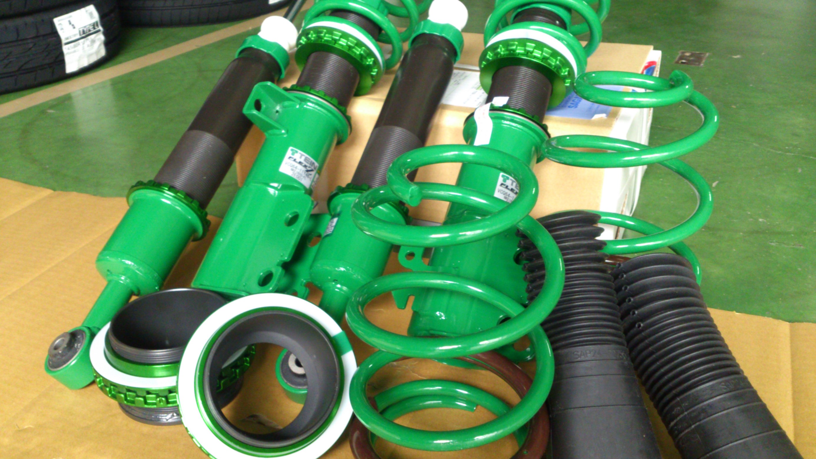 テインの車高調フレックスZとアライメント作業です、前日の夕方から預かり