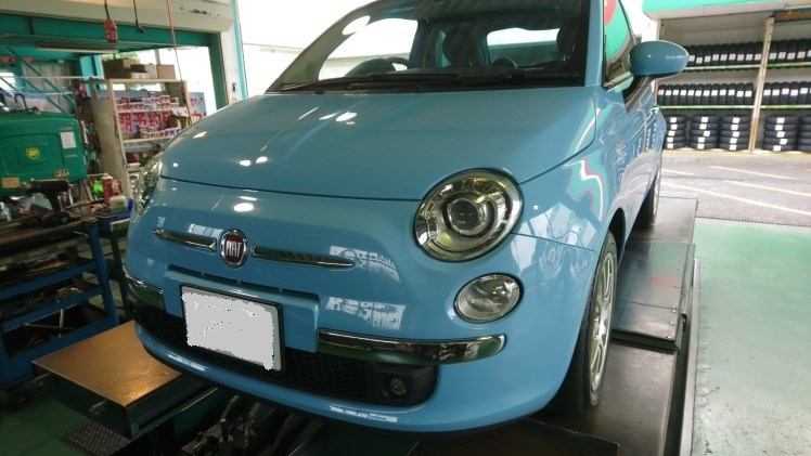 今日はパステルブルーが華やかなフィアットのタイヤ交換です