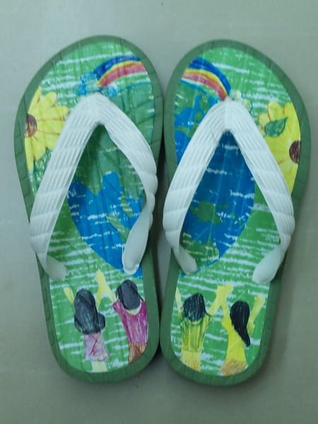 そして、このサンダルのデザインをタイヤ館で、小学生以下の子供達に