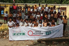 下の画像は、第一弾のサンダルを贈った小学校写真です