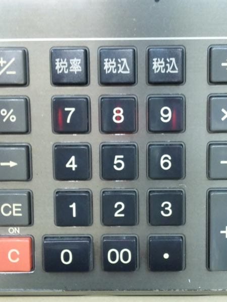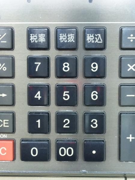 よーく見ると、その内の一台に違和感が、税抜のボタンの所に税込のボタンが