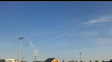 帰りの車中、飛行機雲って飛行機から出る排気ガスの煙だと思ってたんですが