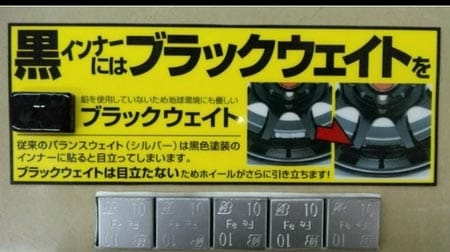 通常のシルバーのバランスウェイトを貼るとシルバーの色が目立ってしまい