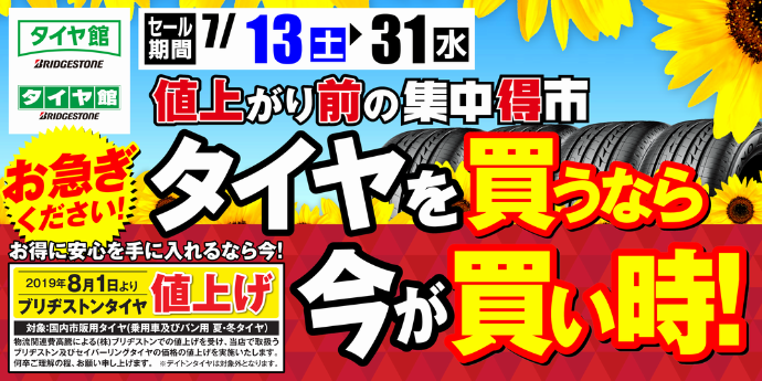 8/1よりタイヤの値上げが予定されています、更に増税も控えています