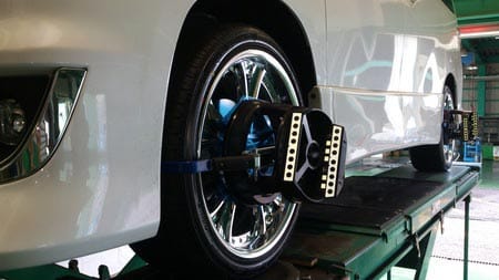迫力があります。タイヤ&ホイール装着後に、画像2枚目のアライメント調整を
