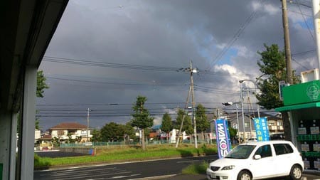 左側は真っ黒の雲で、右側は青空に白い雲の変な空でした