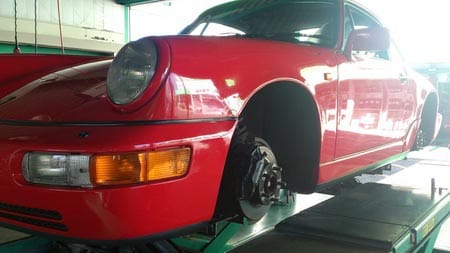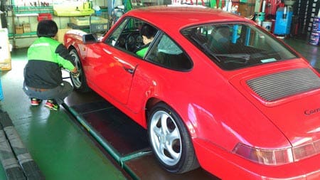 タイヤ館のイメージカラーの緑と、ポルシェの赤
