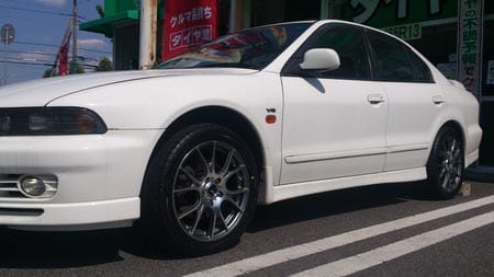 今日は、三菱のギャランにアルミホイールの取り付けです。