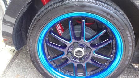 ホイールとフェンダーの隙間から、真っ赤な商品がチラッと見えレーシーな感じでした。