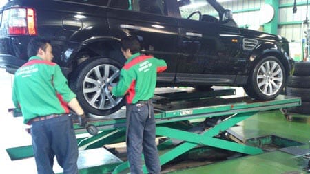 今日の作業は、レンジローバーのタイヤ交換です