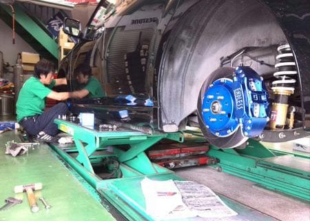 エンドレスのブレーキキャリパーキットの取付です。