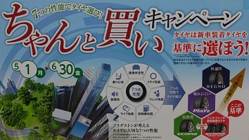 こんにちは、今日は5/1からスタートした「ちゃんと買い」キャンペーンが もうすぐ終わっちゃうので最終のご案内です ブリヂストンの対象商品を4本セットで購入すると コンビニなどで使えるQUOカードがもらえるんです 抽選ではありません、ご購入したお客様すべてにプレゼントです 6/30迄で...