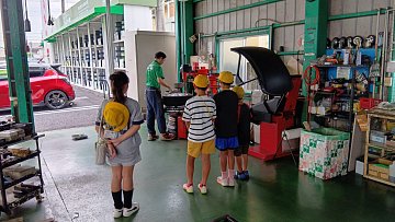 こんにちは、今日は近隣の小学校から6年生の生徒が 職場体験学習の為に来店、朝一の朝礼からの参加です タイヤ交換などの作業を見てもらったり 駐車場の清掃などお手伝いしてもらいました 将来なにかの役に立てば嬉しいです 短い時間でしたがご苦労様でした。