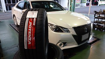 こんにちは、クラウンのタイヤ交換です 交換させて頂いたタイヤは、スポーツタイヤの頂点 ブリヂストンの POTENZA S007A ドライ&ウエットは勿論、スポーツタイヤとは思えない 静粛性で高級セダンにもオススメです 店頭に展示品もあります、気になる方は 是非、見に来てください ありが...