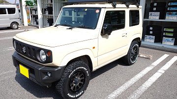 スズキのジムニーです 現在も納車まで結構時間が掛かるみたいですね 本日は、ホイールを取付させて頂きました ホイール WEDS MUD VANCE 06 ホイールのディスク面のブロンズポリッシュが 良い味出してますね、そしてタイヤサイドの ホワイトレターが「4X4」を主張してます ジムニー...