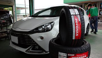 雨の中のご来店ありがとうございます トヨタのアクアのタイヤ交換です お選び頂いたタイヤは、ドライ&ウエット性能を高次元で 融合した、ポテンザ・アドレナリンRE004です アクアもG’sグレードになると17インチが装着されており スポイラーやグリル回りも走りを意識したスタイルになって...