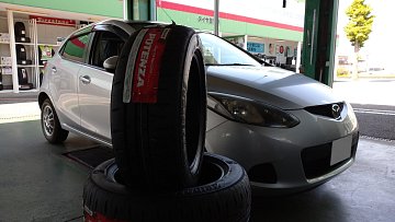 こんにちは、マツダのデミオのタイヤ交換です 交換させて頂いたタイヤは 最速へのこだわりが生んだ リアルスポーツ POTENZA RE‐71RSです タイヤのデザインを見て一目瞭然、 ハイグリップスポーツタイヤです ご使用されたお客様はご存じだと思いますが ほんと、コーナリング時は車が地...