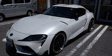 こんにちは、今日はトヨタのスープラのパッド交換です この車、出荷台数が少ないのか?納期がかかるのか? あまり走ってる所を見ません、その為かPITに入った車を 車好きスタッフ数人で足回りなどジロジロ観察してしまいました 当然、新しいお車なのでブレーキパッドは減っていません しかし、B...