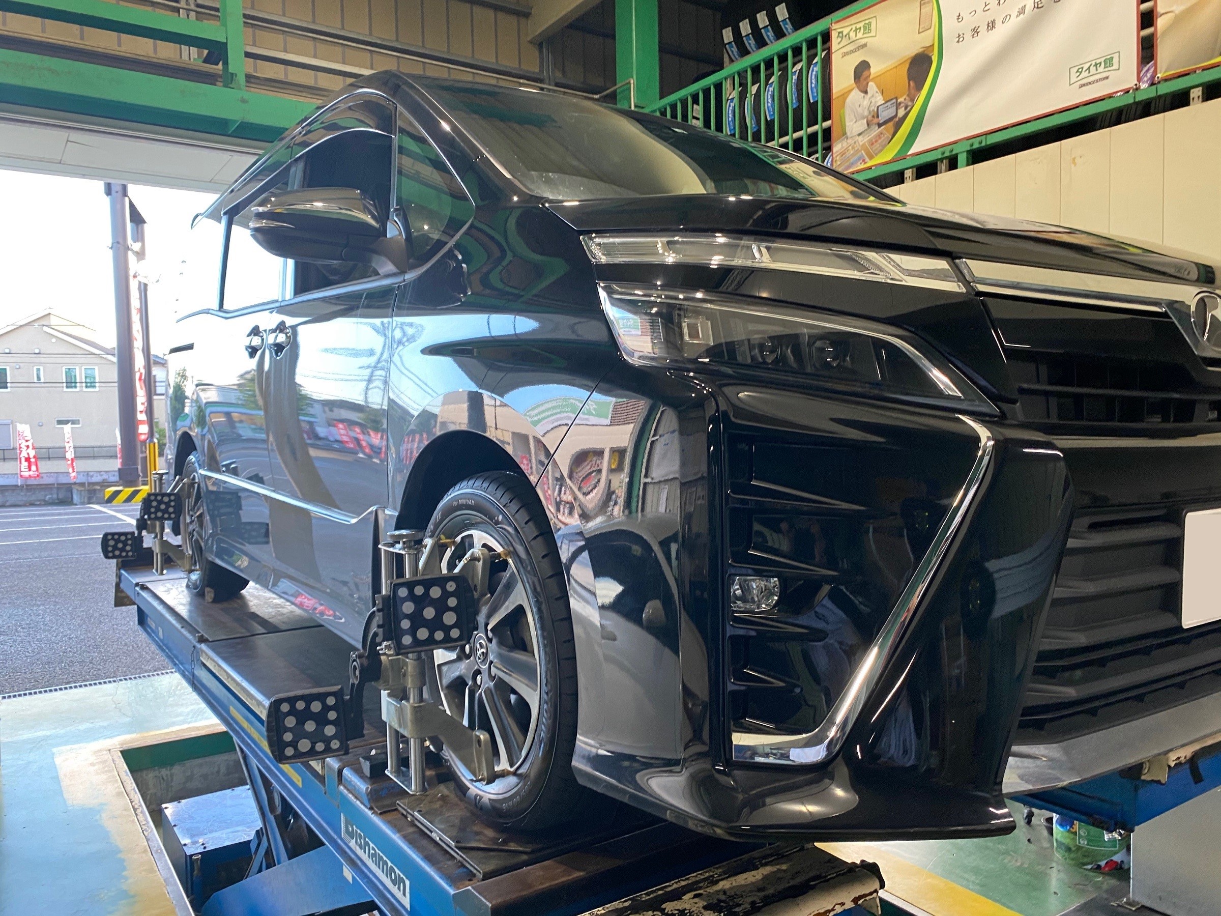 アライメント調整でタイヤの取り付け角度の調整をさせて頂きました!!
