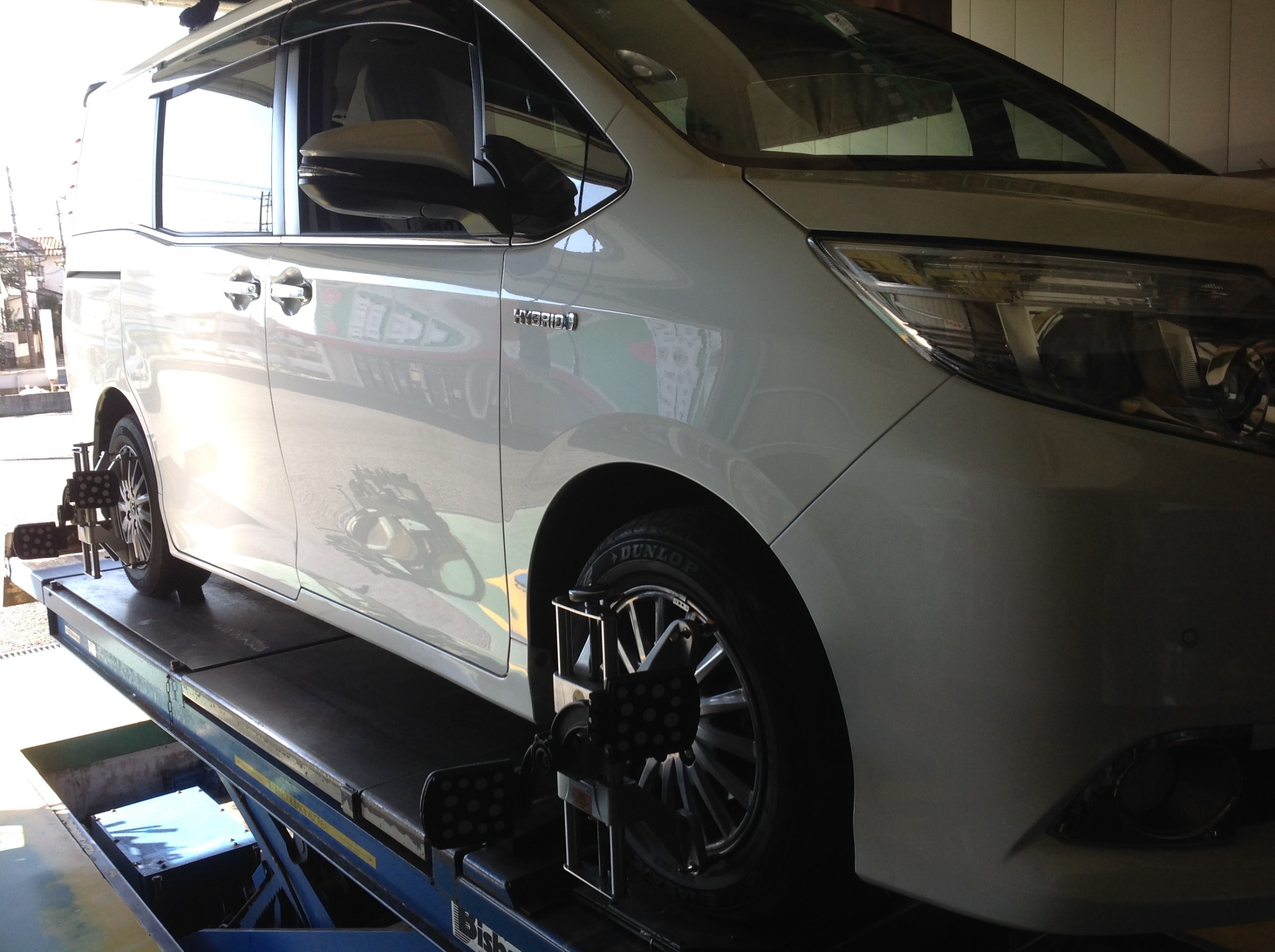 アライメント調整 ポスト 2018年2月6日 本日エスクァイアのアライメント調整を実施 タイヤの取り付け角度は長年の走行により少しずつずれてしまうので、 テスターで点検してからずれがあれば調整してあげると タイヤの溝の偏磨耗を防いで長持ちします! 今回は左のタイヤが大きく内股になっていました、 アライメントは1年に一度定期的な点検をしてあげるのがいいんです