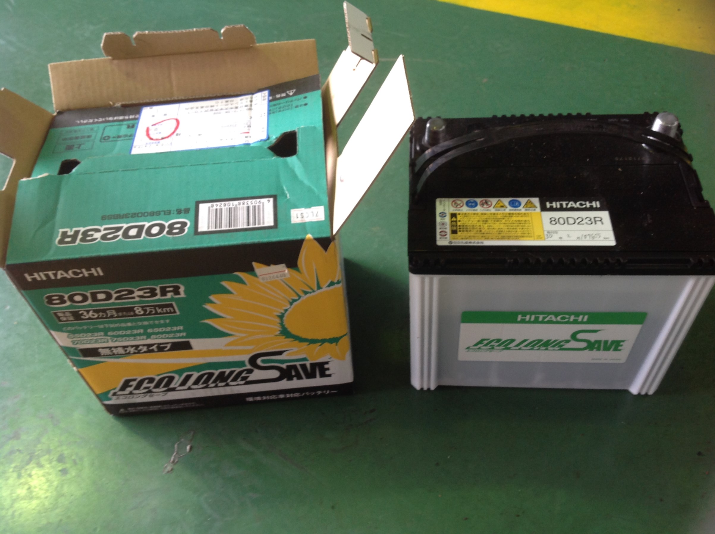 バッテリーは日立製の長寿命バッテリー、エコロングセーブです。