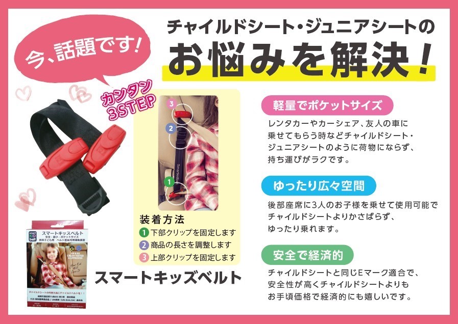 スマートキッズベルトとは、自動車のシートベルトを子供の身体の大きさに
