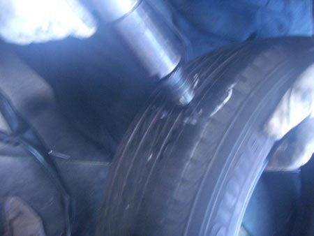 当店のタイヤのパンク修理はタイヤをホイールから外して、タイヤの内側から修理剤を入れる