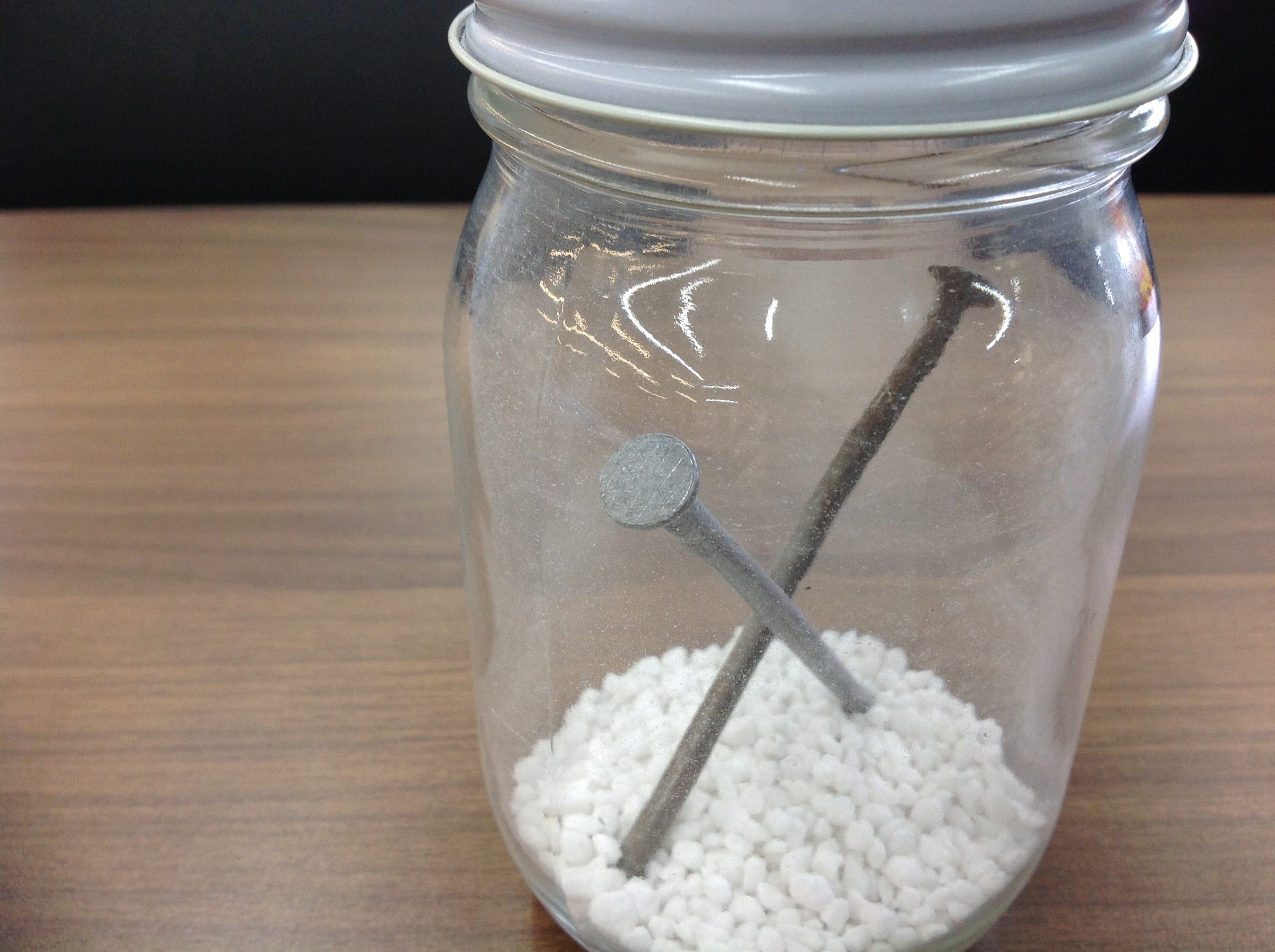 防錆コーティングを行った釘と防錆コーティングを行っていない釘で比較して効果の違いが分かるようになっています!