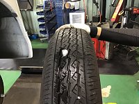 今回は商用車でタイヤから音がするということで来店されました! 空気圧を点検すると… ネジが刺さっていました!!Σ(゚Д゚) 音の原因はこやつですね… パンク修理(内面修理)も出来る状態ですが、料金が修理とタイヤ一本で値段がそんなに変わらないので、 お客様の要望で今回は一本交換になりました(^...