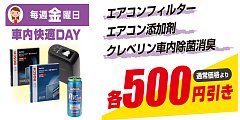 皆さんこんにちは(^^)/ 今日も明日のクーポン情報お届けします! 気になるクーポンは…コチラ!! 車内を快適にしてくれる エアコンフィルター・エアコン添加剤・クレベリン車内除菌消臭 コチラを500円引きいたします!(^^♪ この機会に車内空間快適にしませんか?