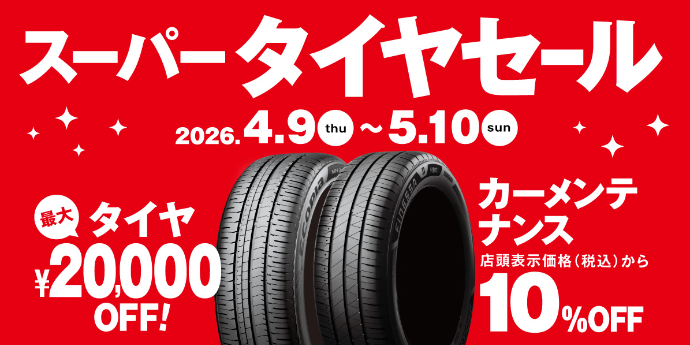 ブリヂストンタイヤをお得に買える!スーパータイヤセール開催!!