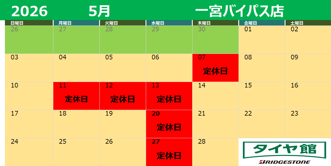 タイヤ館一宮バイパスです。