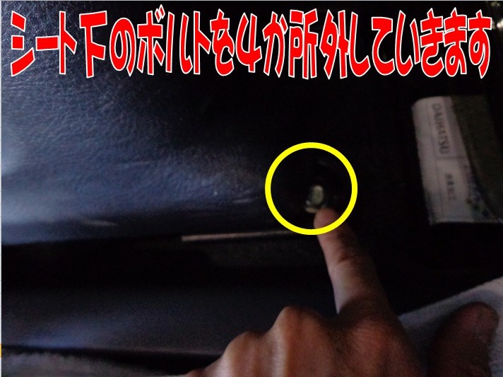 まずは、シート下にある 4か所のねじを外していきます。