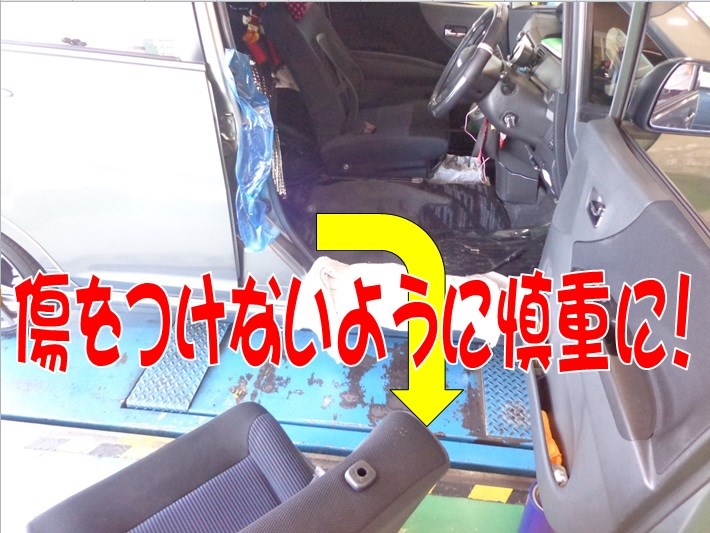 お車に傷をつけないよう、保護をしシートベルト警告コネクタを外し車両から出します。