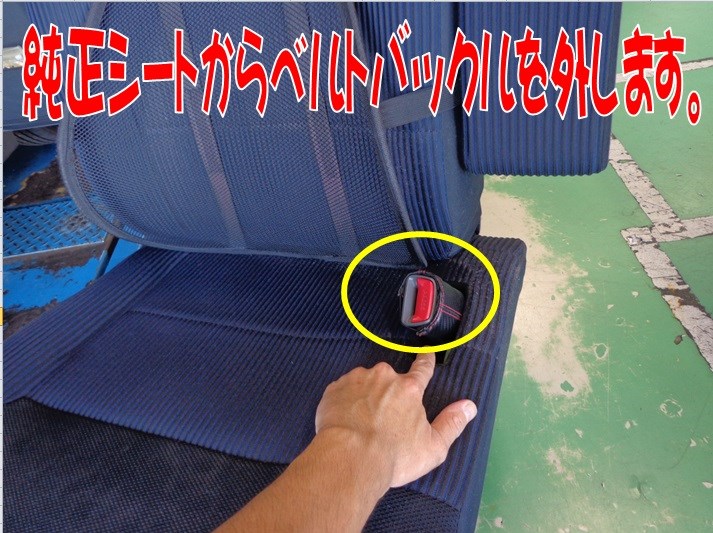 純正シートから、シートベルトバックルを外して、RECAROシートに移植です。