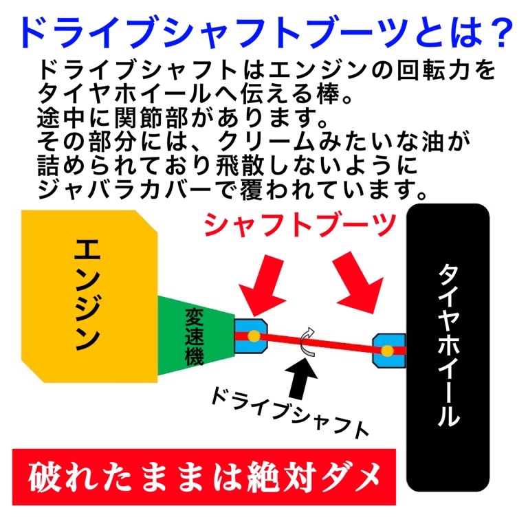 ドライブシャフト???ブーツ???これについてご説明させていただきます。